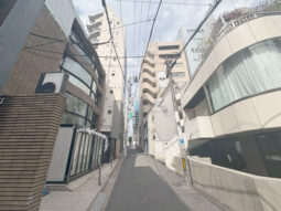 表参道駅徒歩3分、青山通りから骨董通りに入ってすぐの交差点を入ったところにある建物の地下1階貸店舗。