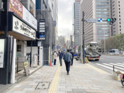 人通りも車通りも多いです。