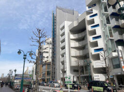 渋谷駅徒歩7分、公園通りの角地に建築中の新築店舗ビルの1階店舗。