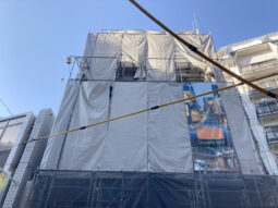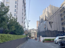六本木駅徒歩3分、六本木通りから1本入った通りに建築中の新築テナントビルの地下1階。